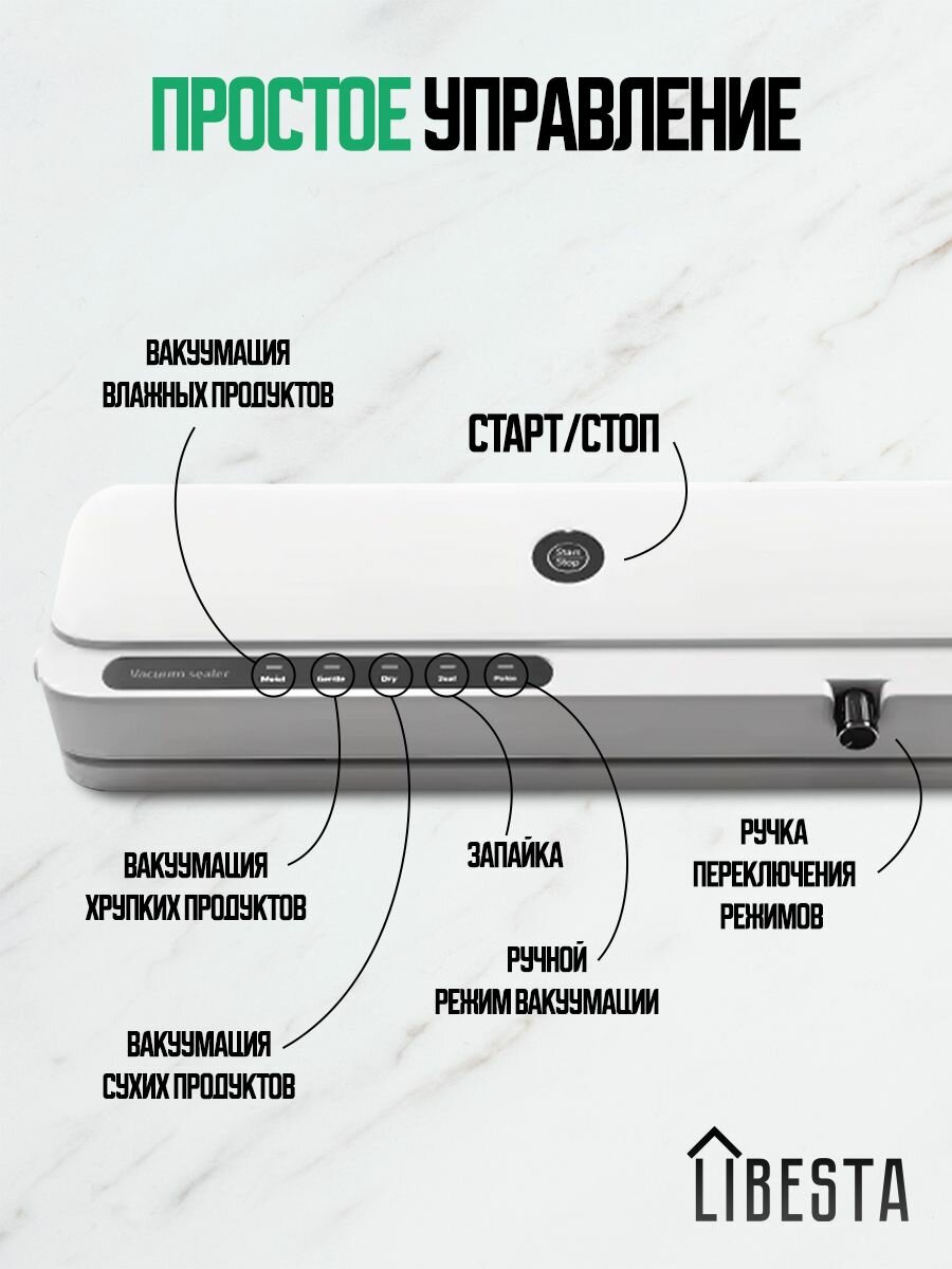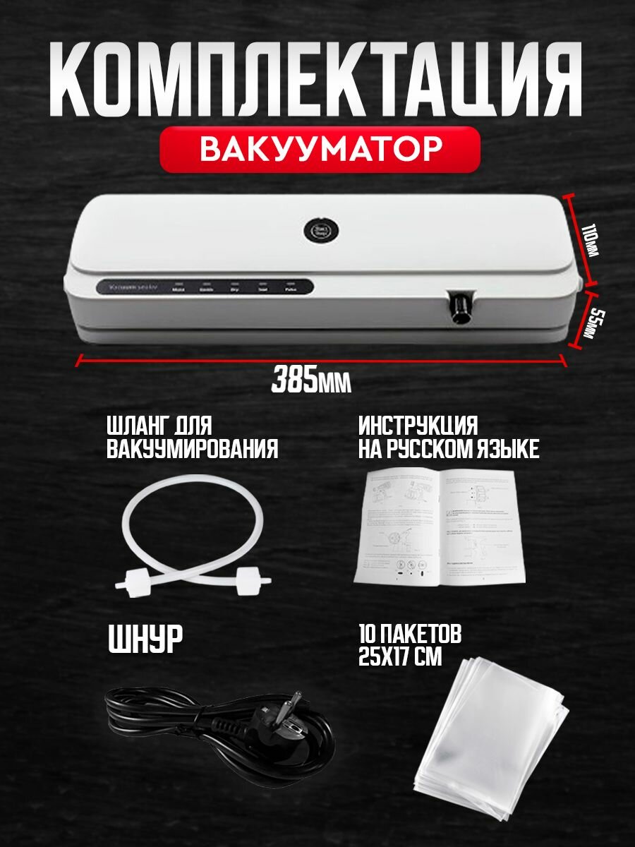 Вакуумный упаковщик, вакууматор для продуктов, мощность 110 Вт, белый интересное: