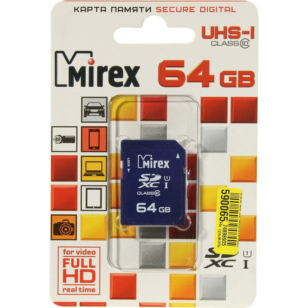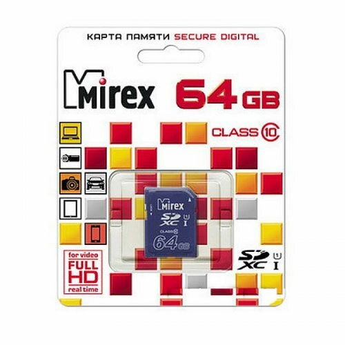 Карта памяти SDXC Mirex 64 Гб класс 10 UHS-I Secure Digital flash card