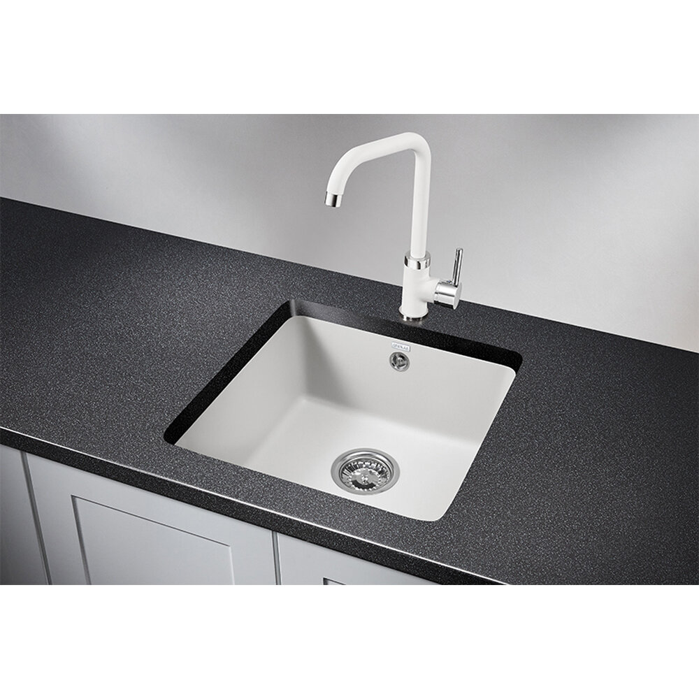 Кухонная мойка кварцевая Granula GR-3801 квадратная подстольная односекционная, подстольная, чаша 400x380, цвет арктик (3801wh)