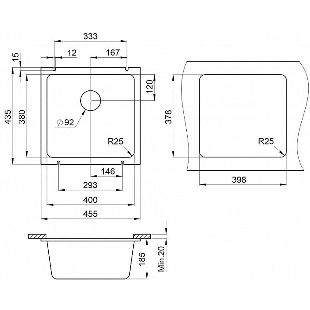 Кухонная мойка Granula GR-3801 45.5х43.5 черный