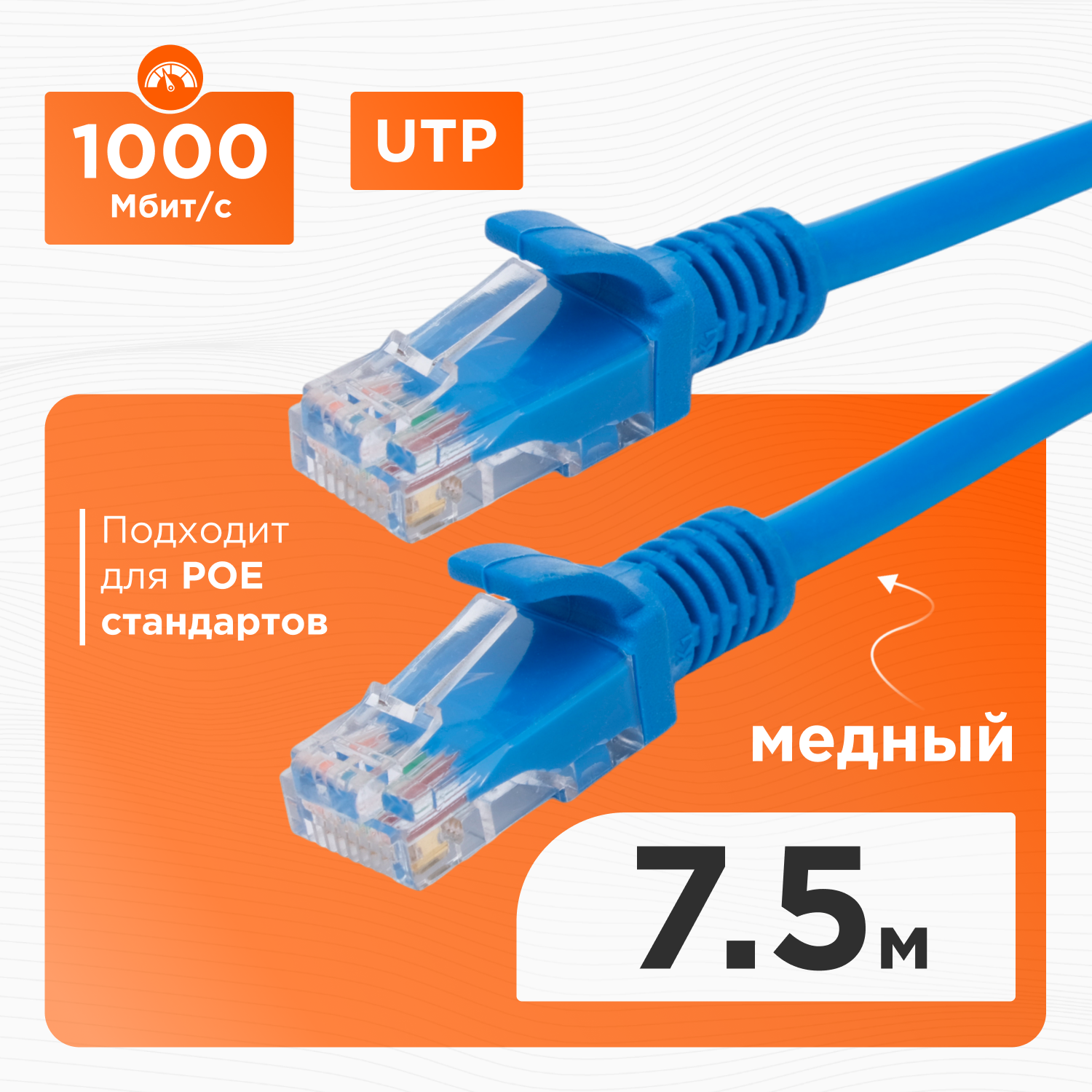Купить Патч-корд медный UTP Cablexpert синий категория 5e длина 7.5м PP10-7.5M/B