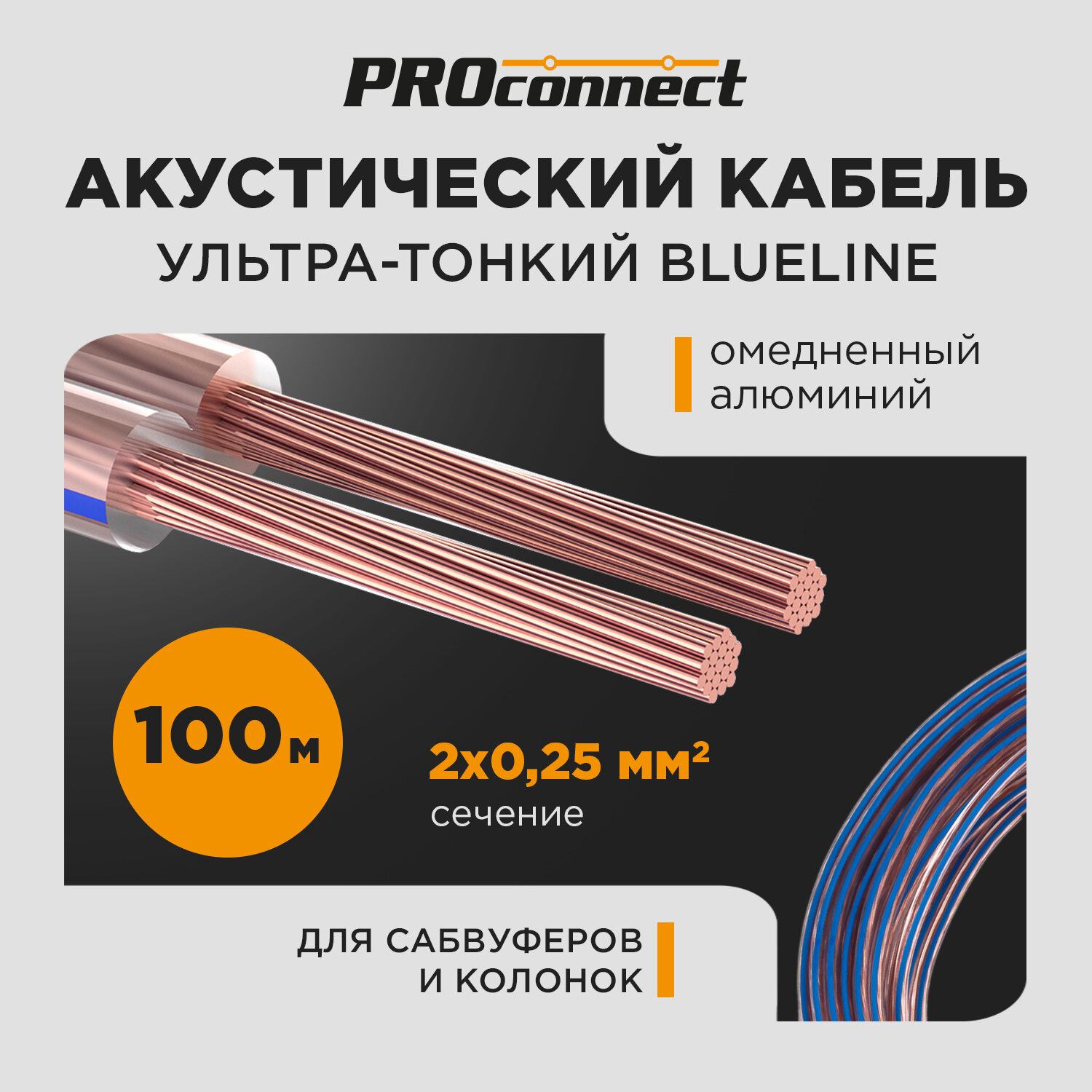 Кабель акустический 2х0,25мм², прозрачный BLUELINE, 100м PROconnect интересное: