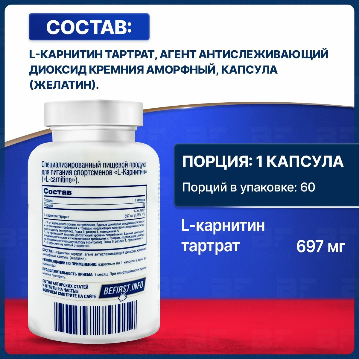 Be First L-карнитин 700, 60 шт., нейтральный