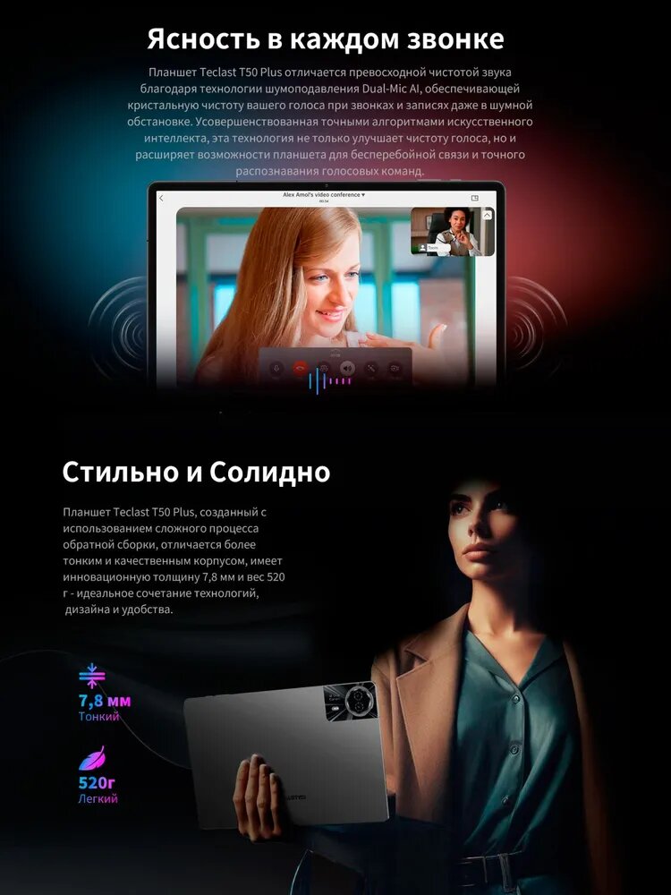 СохранитьПланшет Teclast T50Plus, 11", 6ГБ/256ГБ, LTE, Android 14, Серый интересное:
