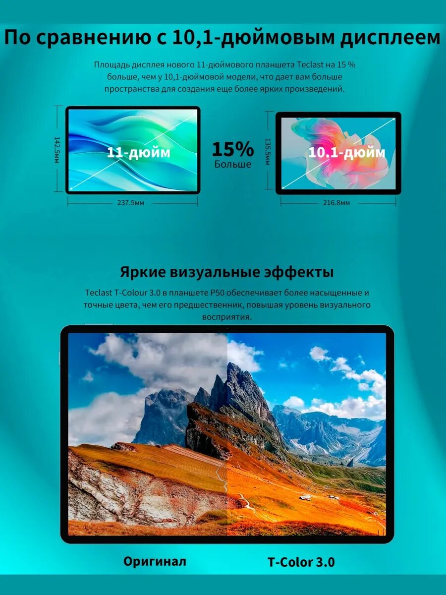 11" Планшет TECLAST P50 6/128 GB 90Гц, 1280 x 800, Android 14, LTE, голубой