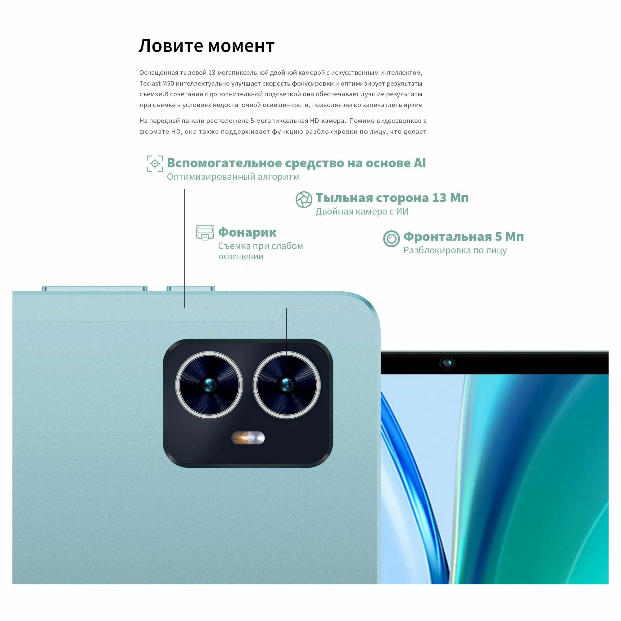 Планшет M50 Plus, MTK G85, 10.1" FHD, 128ГБ, бирюзовый