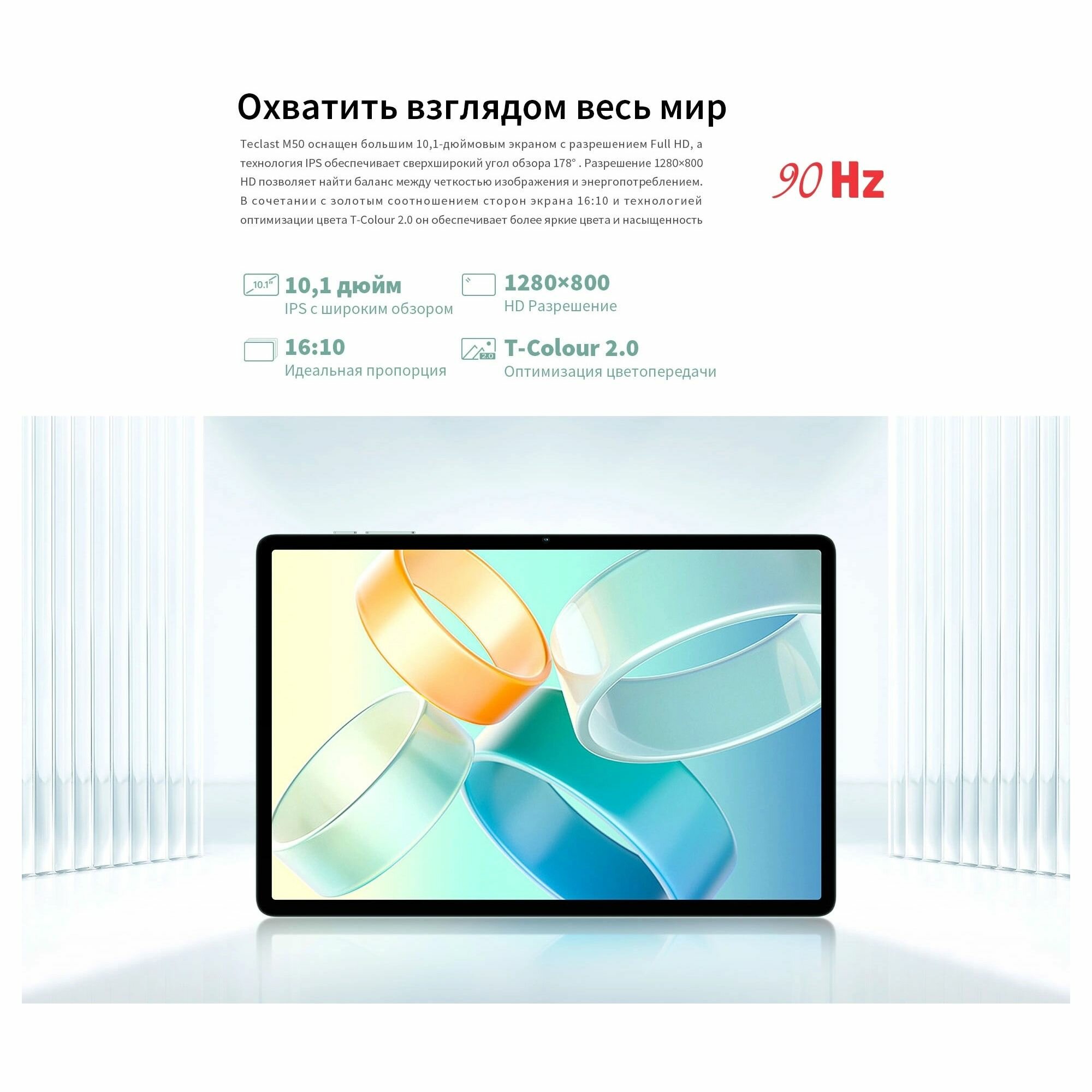 Планшет Teclast M50S голубой, процессор Unisoc T606, ОЗУ 4Gb, встроенная память 128Gb, диагональ экрана 10.1"