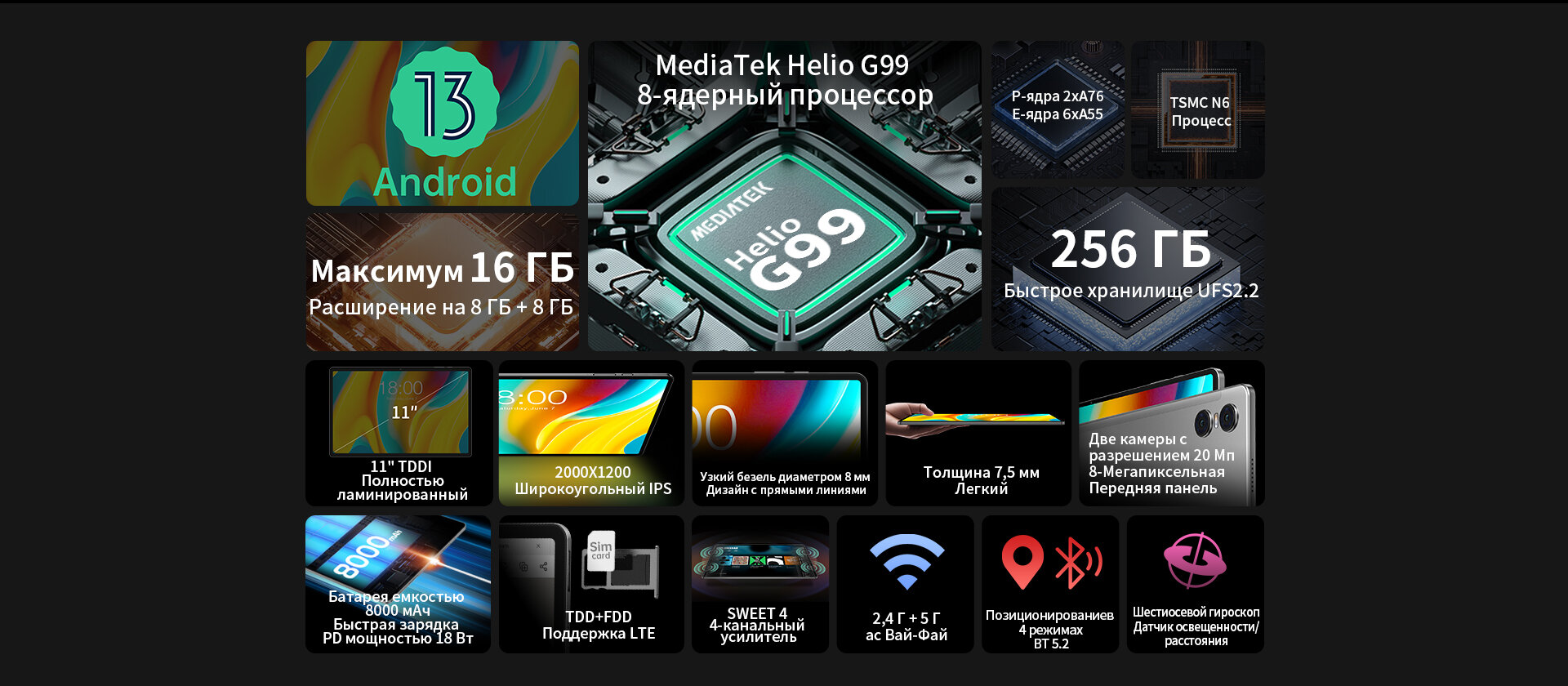 Сохранить10.95" Планшет TECLAST T50 Pro 8/256 GB G99 4G, 2000 x 1200, Android 13, серый интересное: