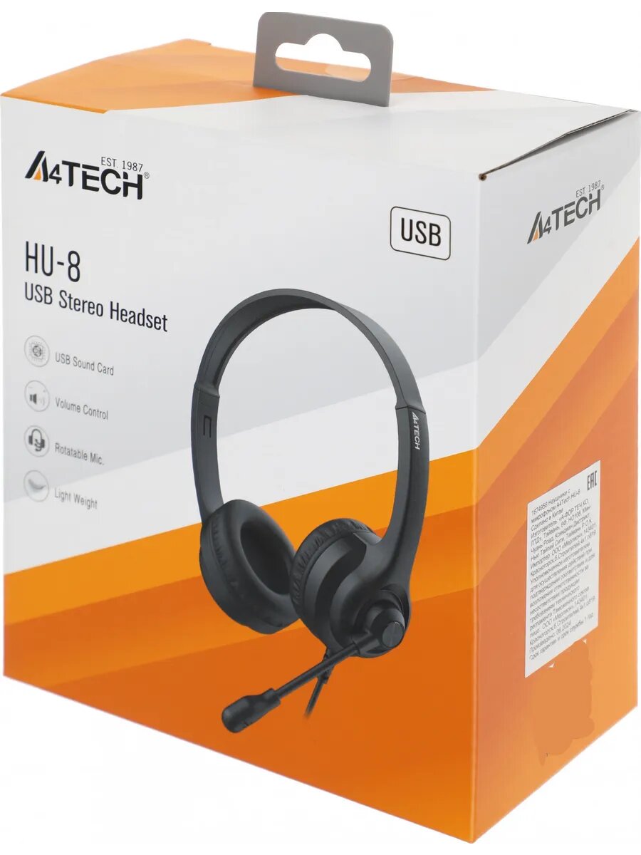Наушники с микрофоном A4Tech HU-8 черный 2м накладные USB оголовье HU-8 .