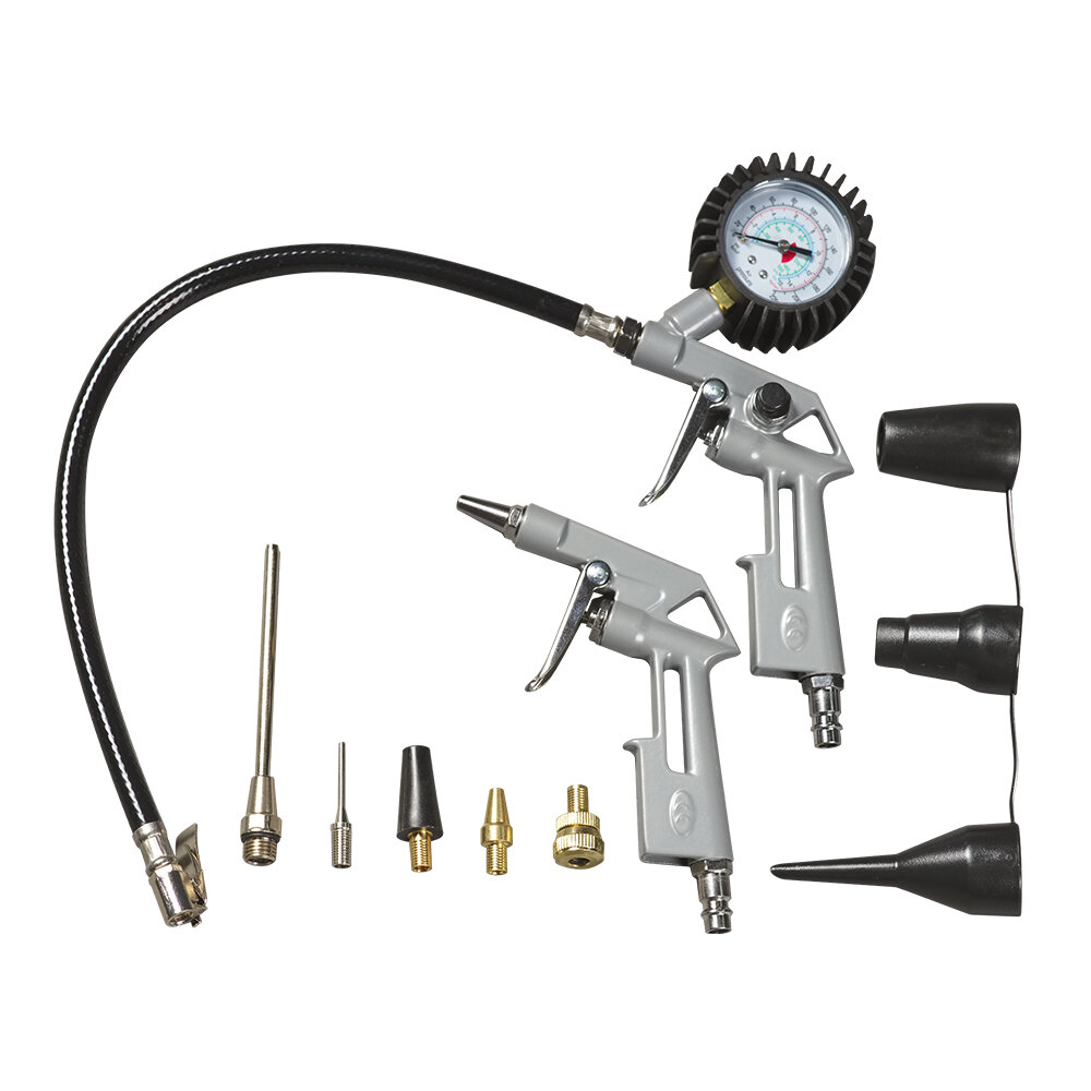 | Плюсы: | Портативность, ресивер, набор инструментов в комплекте, регулировка давления на выходе, работа от бытовой сети. |