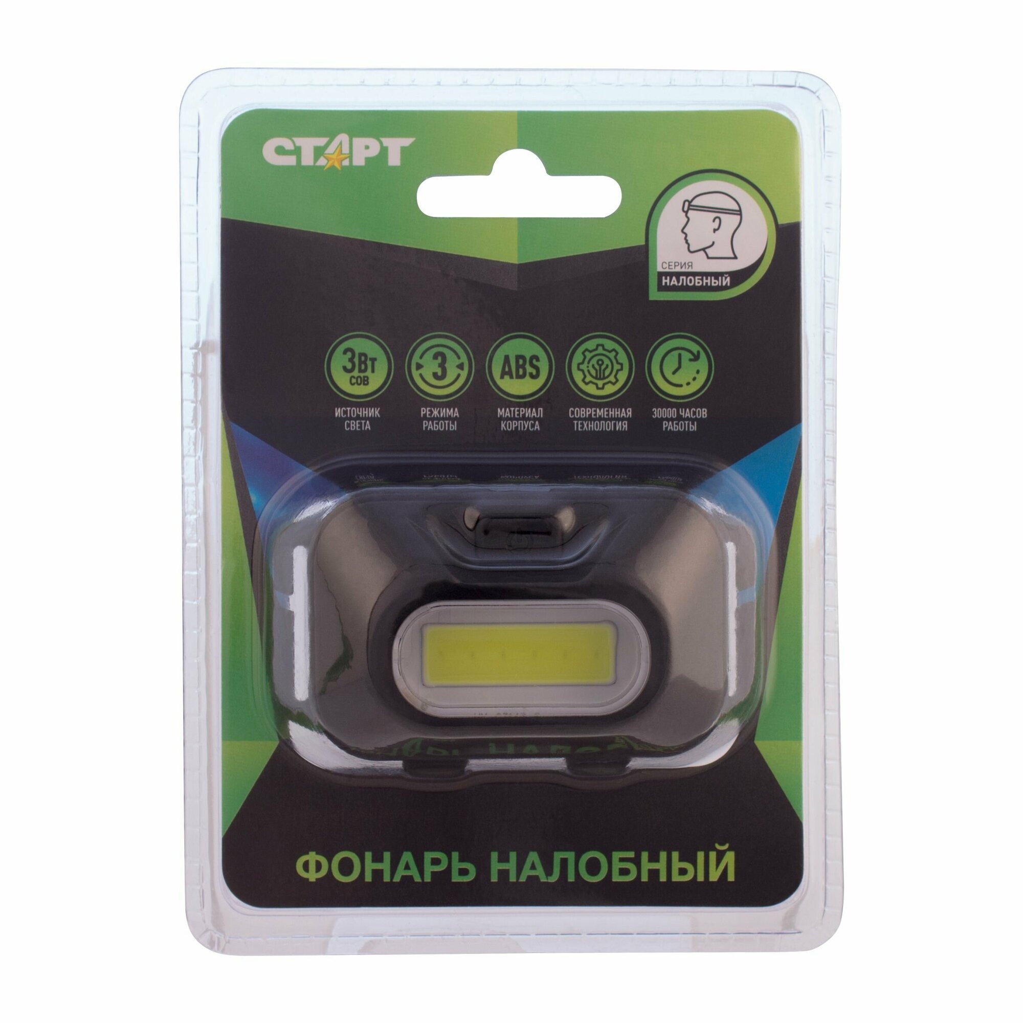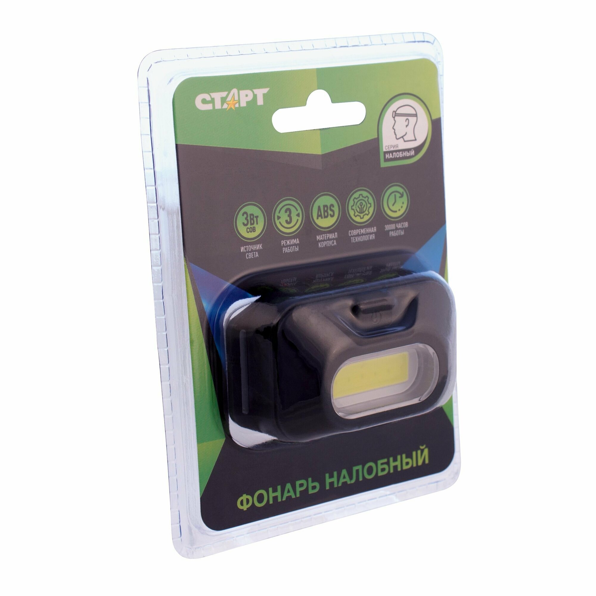 Фонарь налобный старт 3Вт COB, 3 режима, влагозащита, 3хААА (не в комплекте), LOE 203-C1, 12281
