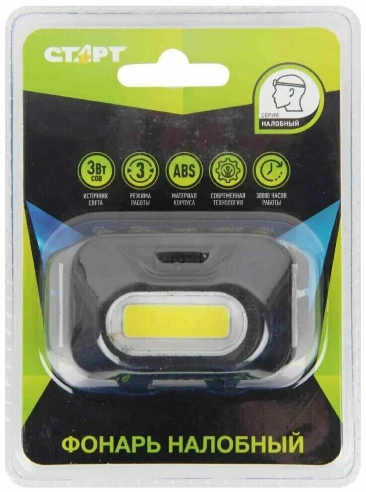 Фонарь налобный старт 3Вт COB, 3 режима, влагозащита, 3хААА (не в комплекте), LOE 203-C1, 12281 В комплекте: 1шт.