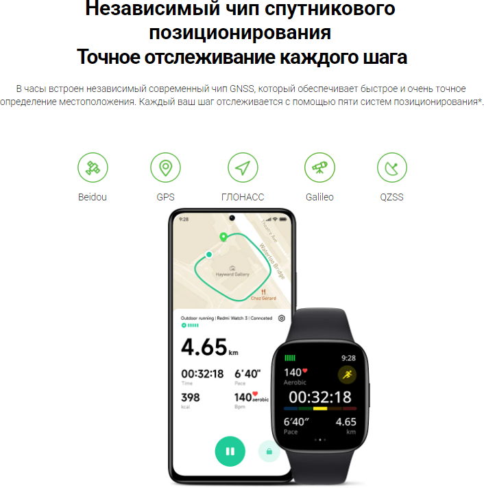 Умные часы Xiaomi Redmi Watch 3 42 мм Global для РФ, черный