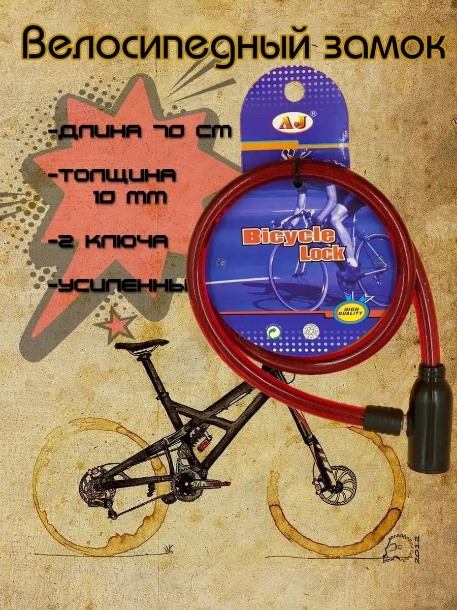 Замок для велосипеда 3GS, ключевой, усиленный, трос 70см, красный интересное: