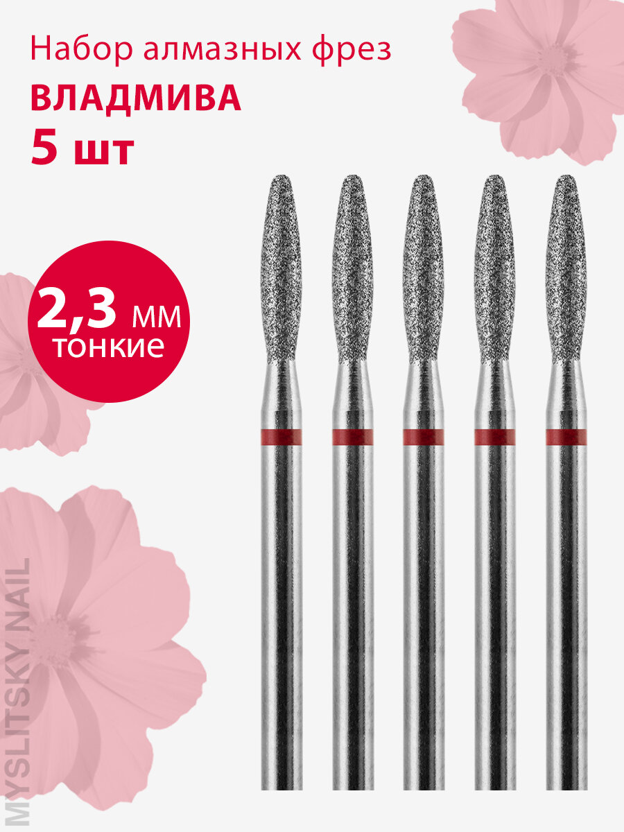 Владмива Фреза для маникюра и педикюра алмазная 806 104 244 514 018 Тонкая красная пламя (5 шт)