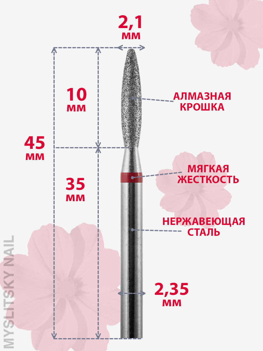 Фреза для маникюра и педикюра алмазная ВладМиВа для кутикулы 806 104 244 524 021 Средняя пламя (упаковка 5 шт)