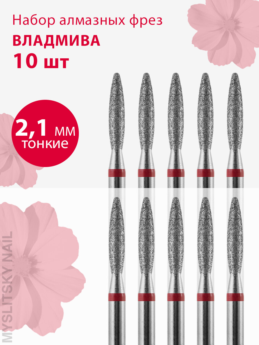 Владмива Фреза для маникюра и педикюра алмазная 806 104 244 514 023 Тонкая красная пламя (10 шт)