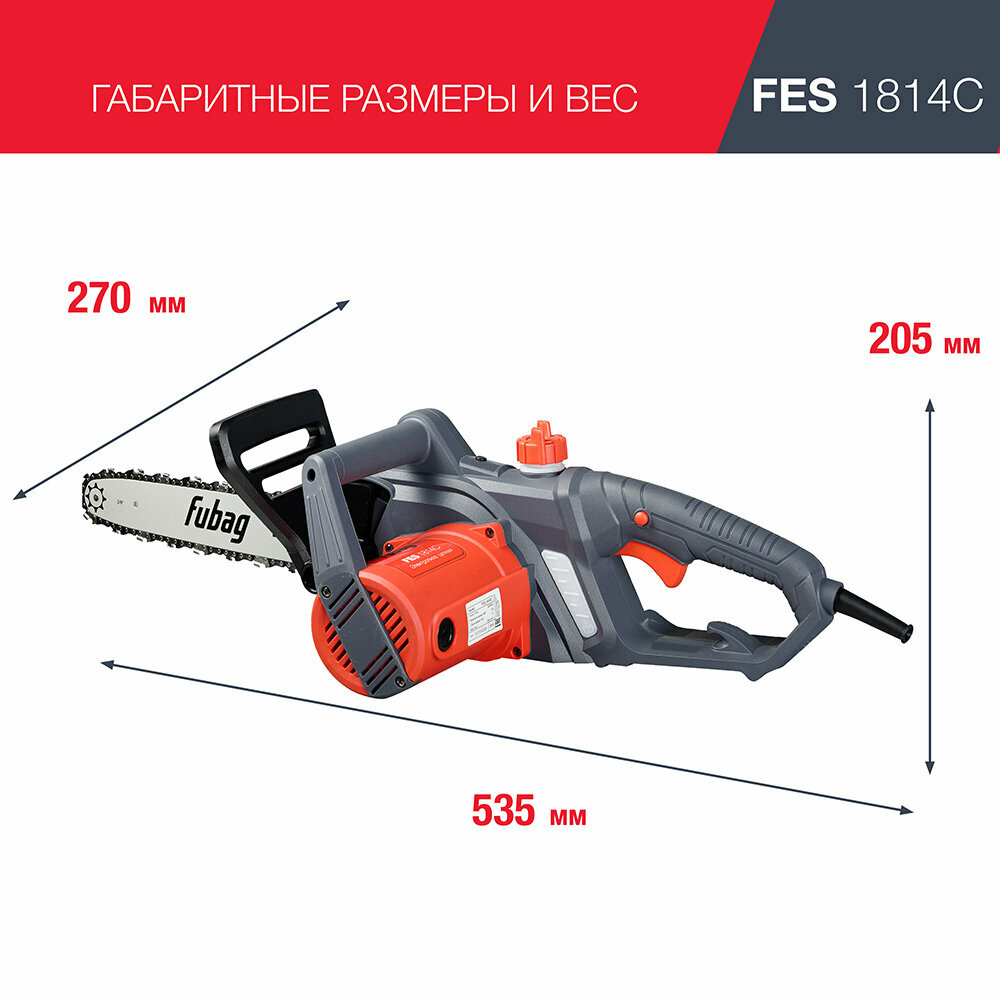 Купить Пила цепная электрическая FUBAG FES 1814С, 220 В, 1,8 кВт/2,45 л. с, шина 14 дюймов, кол-во звеньев 52