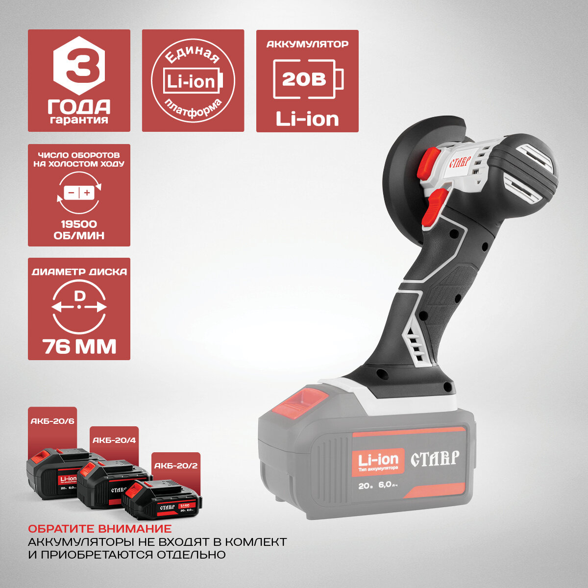 Машина шлифовальная угловая аккумуляторная ставр МШУА-76/20