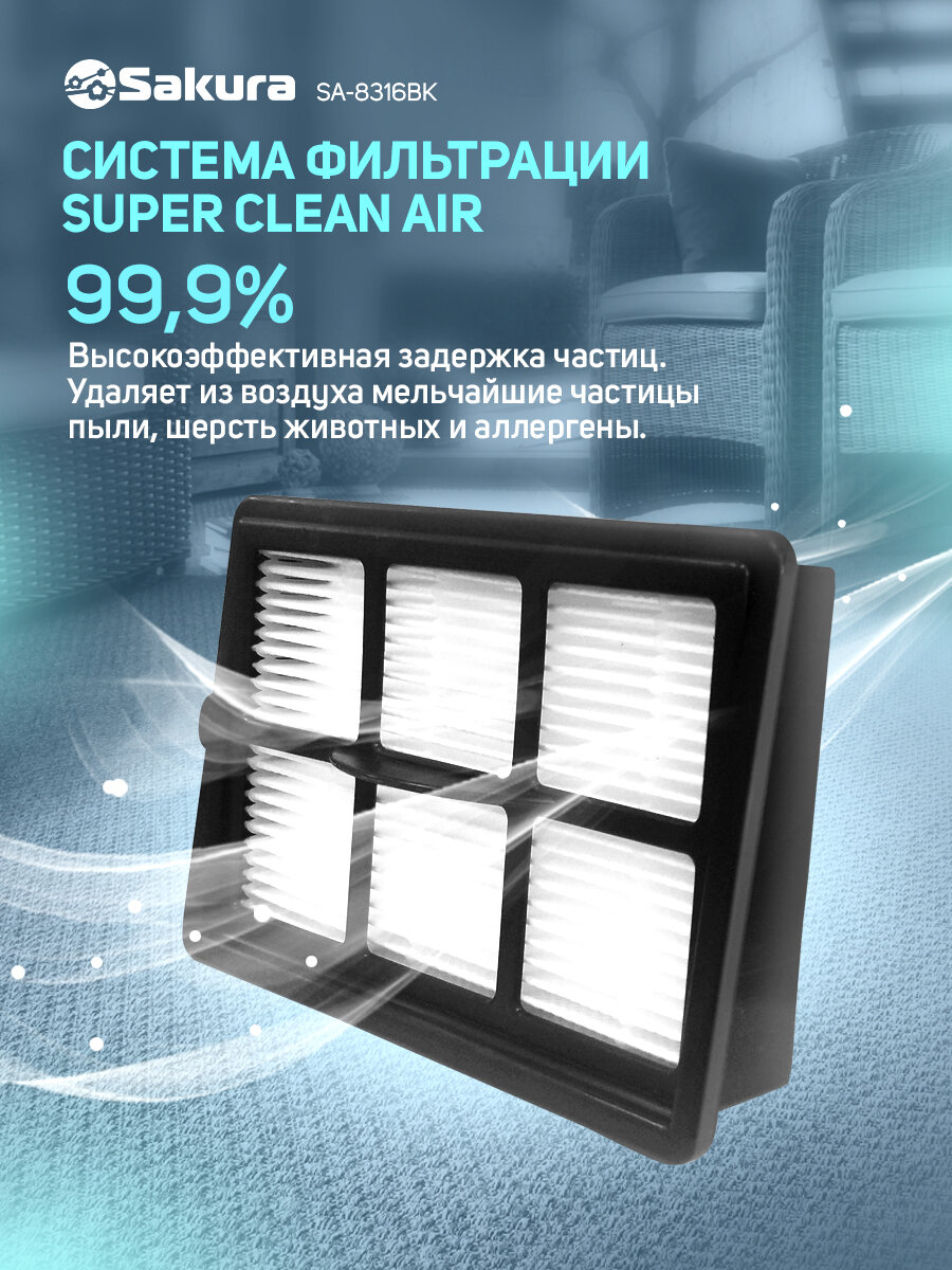 Пылесос SA-8316BK, 2400/450 Вт, HEPA-фильтр, 4 л, чёрный