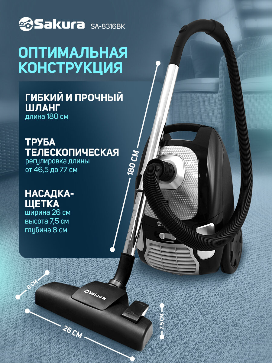 Купить Пылесос Sakura SA-8316, 2400W, мешок, телескопическая труба, вертикальное хранение