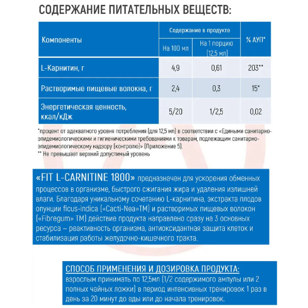 Витаминный комплекс для спортсменов FIT L-СARNITINE 1800 20 amp x 25 ml.