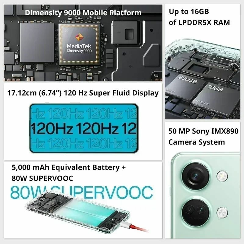 Смартфон OnePlus Nord 3 5G, 16/256 ГБ, Green, зеленый