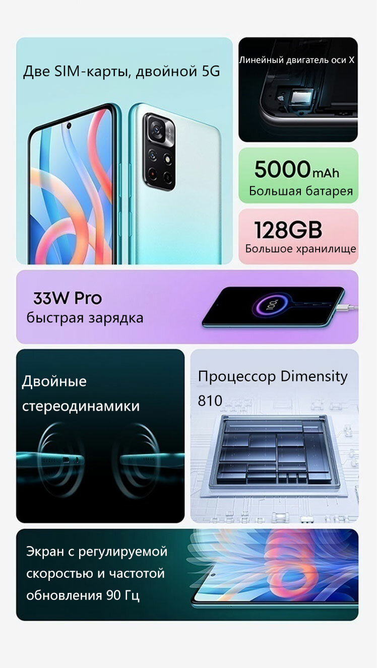 Смартфон Redmi Note 11 5G 6.6 'FHD 90Hz Dimensity 810 8 - ядерный аккумулятор емкостью 5000 мАч 33 Вт