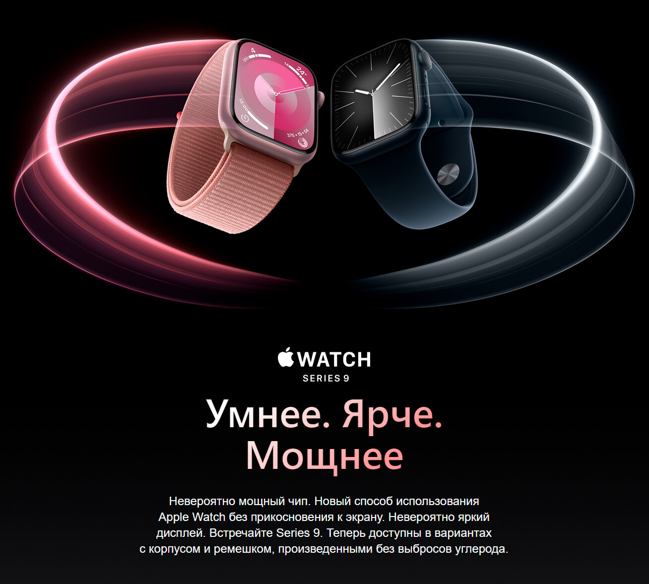 Смарт-часы Apple Watch Series 9 A2978, 41мм, темная ночь/темная ночь [mr9l3ll/a/muun3am/a]