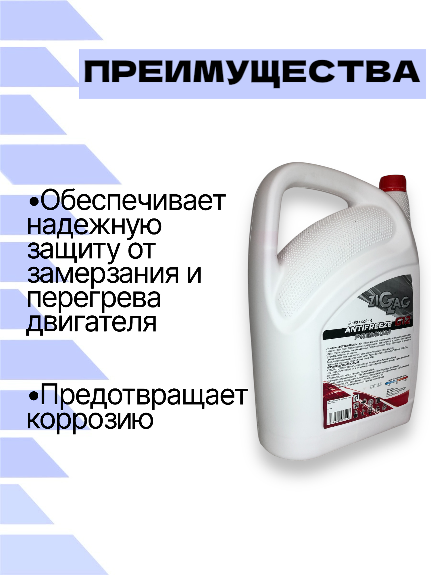 Антифриз ZIGZAG PREMIUM G12 –40°C, 20 л., охлаждающая жидкость для техники