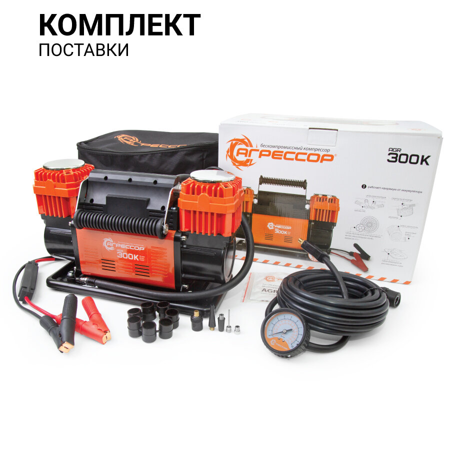 Компрессор автомобильный двухпоршневой АГРЕССОР, 300 л./мин, 900W, AGR-300K (насос автомобильный электрический) интересное: