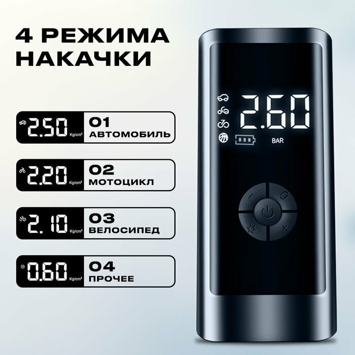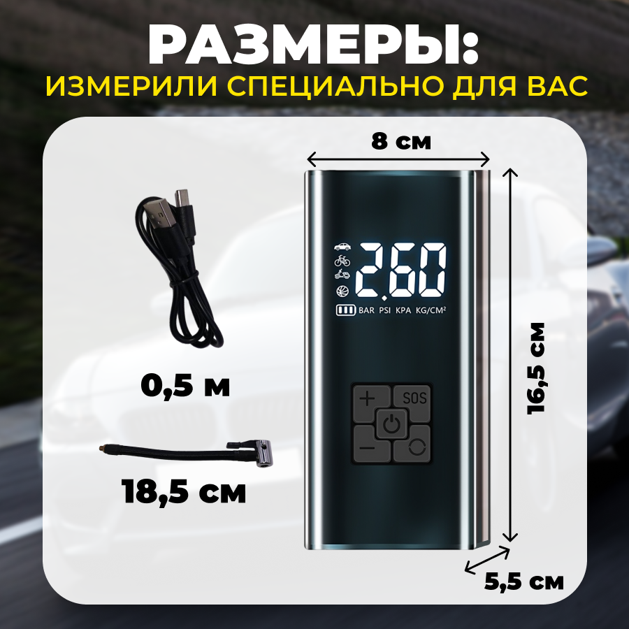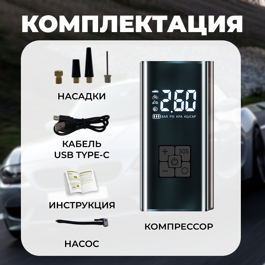 Компрессор автомобильный, аккумуляторный, поршневой, цифровой манометр, насос беспроводной для накачки шин, для гаража интересное: