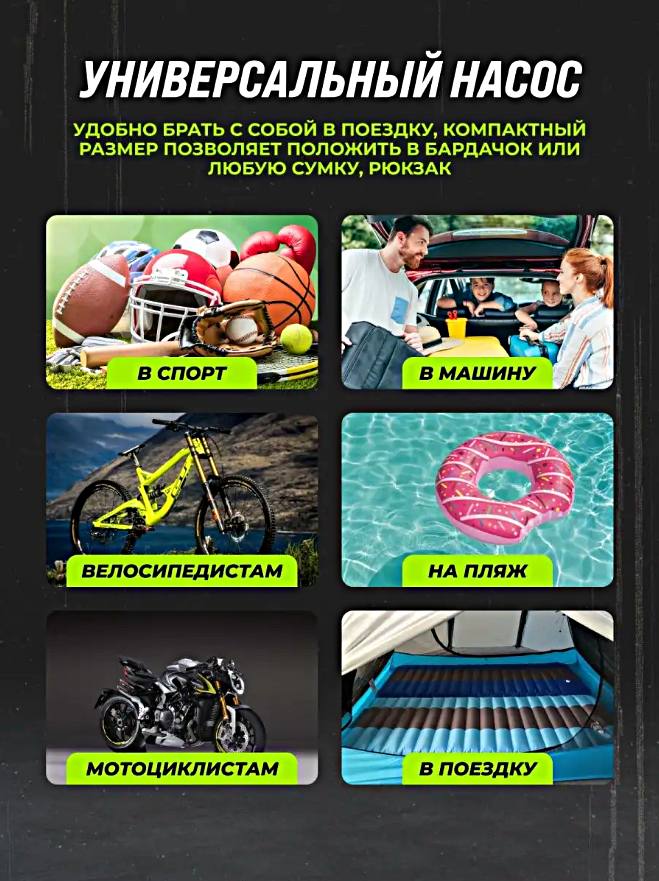 Ниже Вы можете прочитать отзывы на Компрессор беспроводной, Портативный насос универсальный для машины, мотоцикла, велосипеда, мяча, LED дисплей, Черный, ознакомится с подробными характеристиками, посмотреть интересные обзоры и фотографии на Компрессор беспроводной, Портативный насос универсальный для машины, мотоцикла, велосипеда, мяча, LED дисплей, Черный.