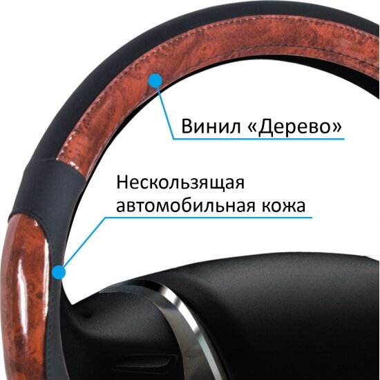 Оплетка на руль Senator Oregon, нескользящая кожа, "M", 38см, дерево интересное: