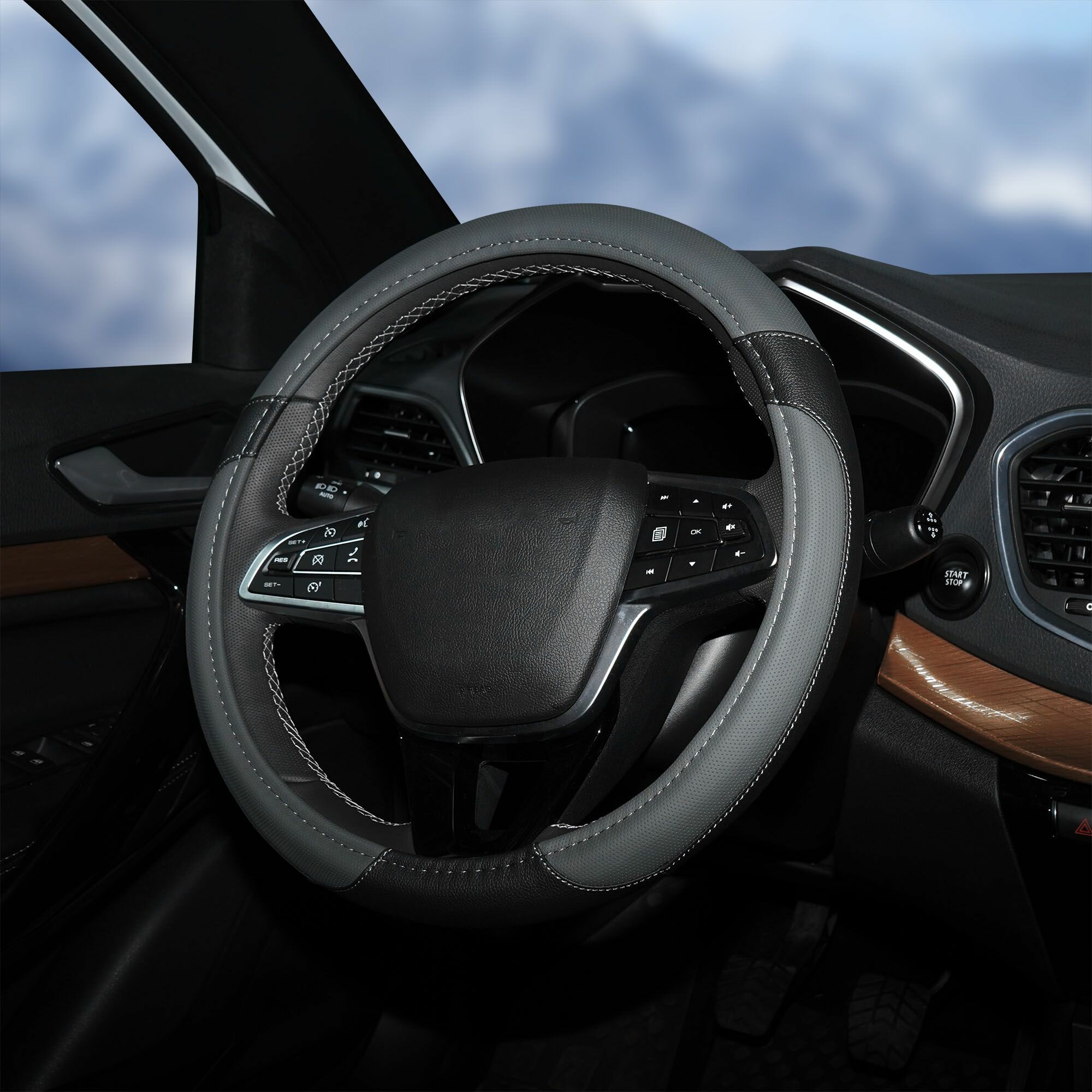 Оплетка на руль, искусственная кожа с перфорацией, серая/черная, 40 см / L (AWC-SL-02L)