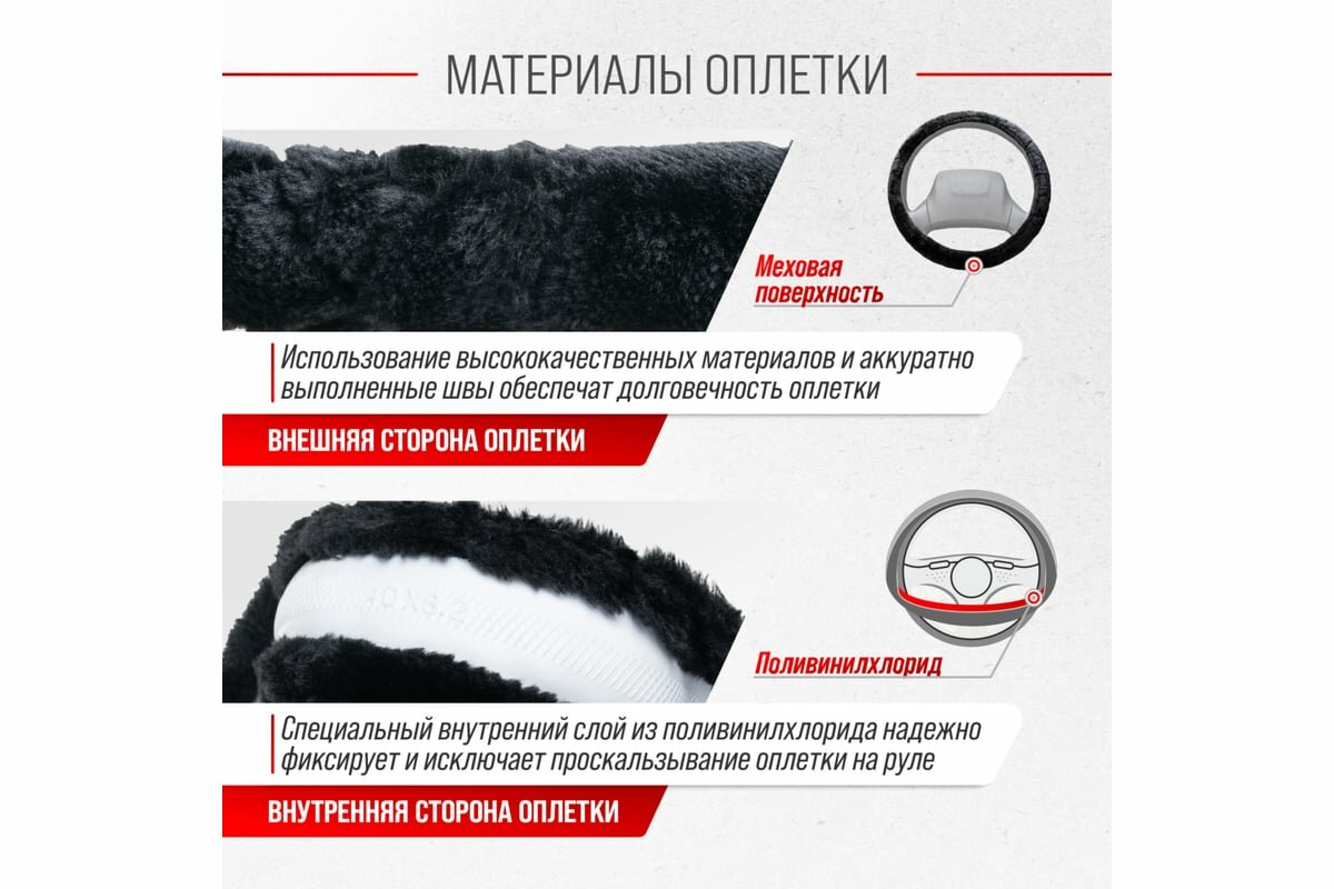 Оплетка на руль L "SKYWAY" Arctic-2 искусственный мех, черный SKYWAY S01107012 | цена за 1 шт