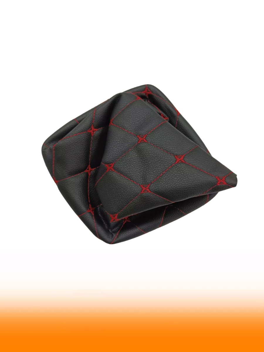 Чехол коробки переключения передач (КПП) на ВАЗ-2170 Лада Приора (Lada Priora) - черный с красной строчкой ромб "бабочка"