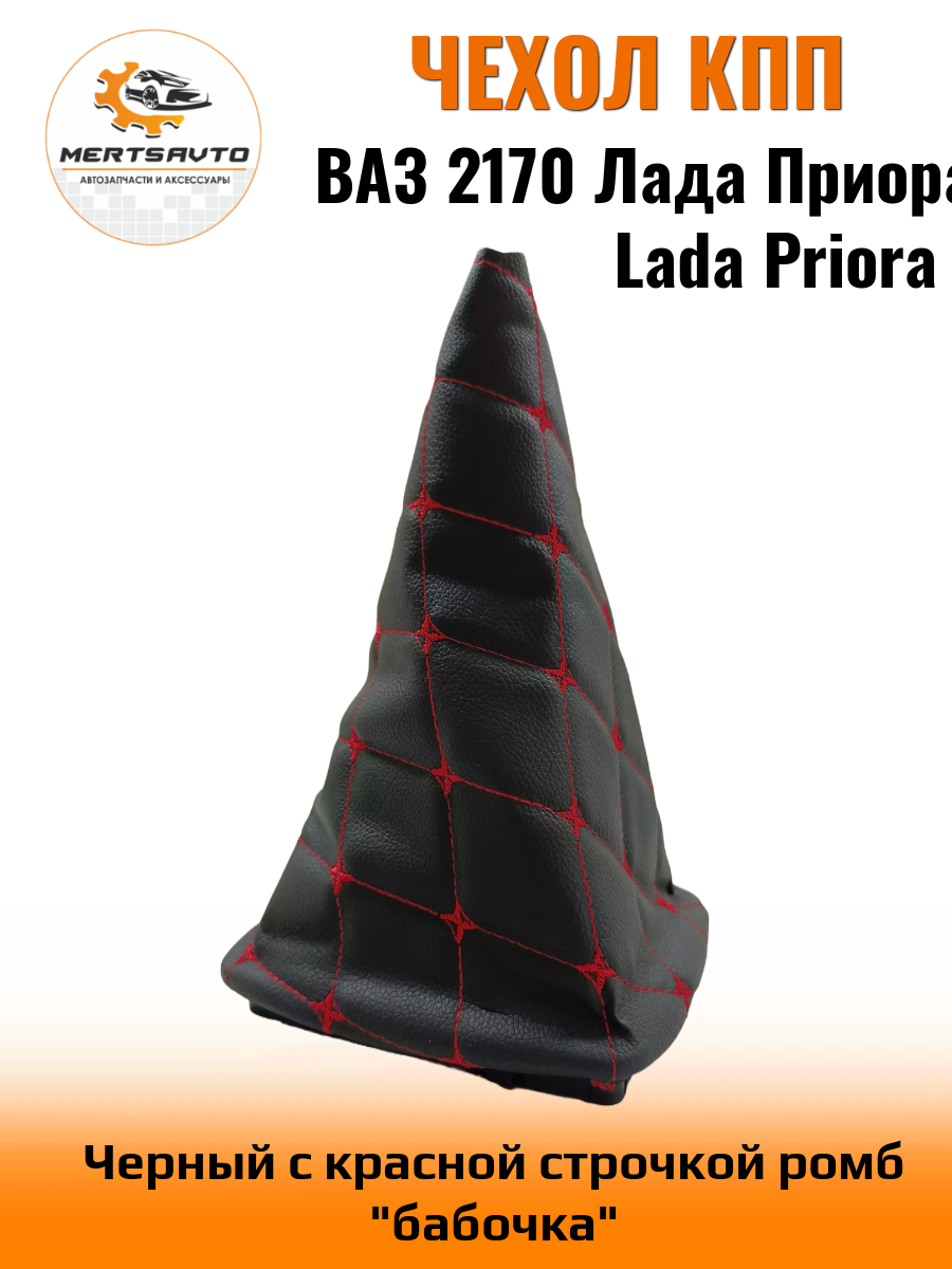 Купить Чехол КПП Mertsavto, для LADA Priora, экокожа, черный с красной строчкой, ромб "Бабочка", 1 шт