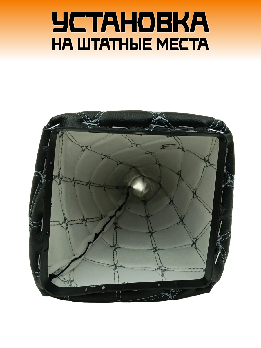 Купить Чехол коробки переключения передач КПП, ВАЗ-2170 Лада Приора Lada Priora черный с двойной серой строчкой "ромб-бабочка"