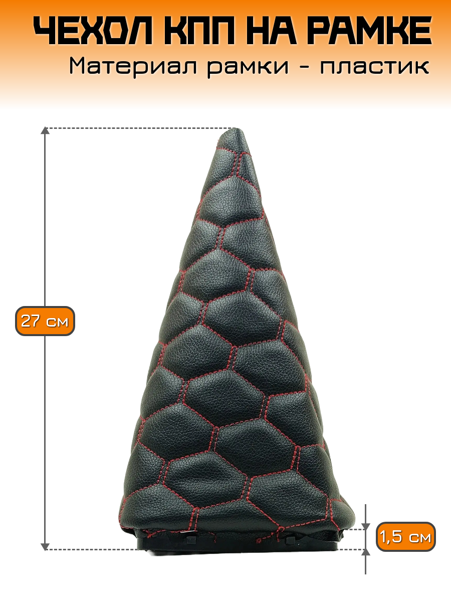 Купить Чехол коробки переключения передач (КПП) на ВАЗ-2170 Лада Приора (Lada Priora) - черный с красной строчкой "соты"