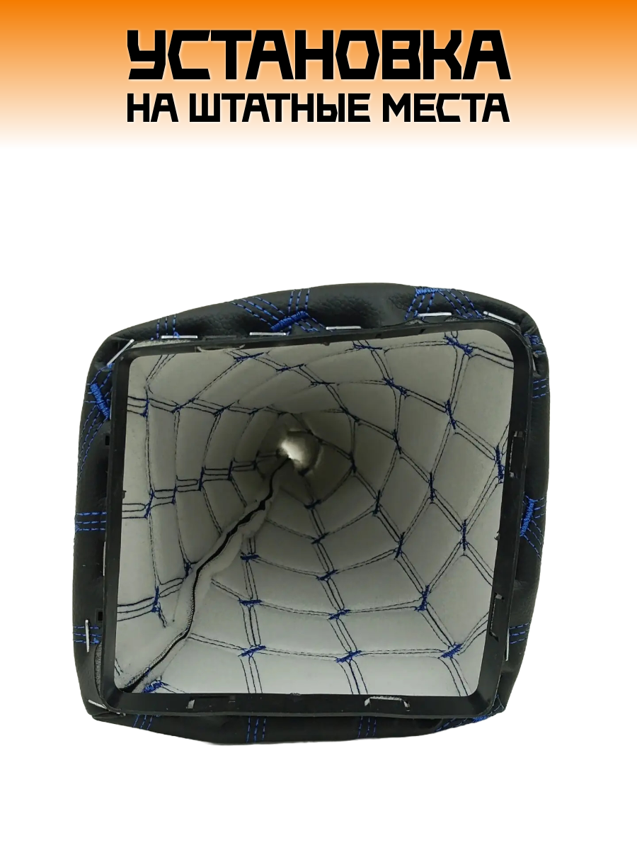 СохранитьЧехол коробки переключения передач (КПП) на ВАЗ-2170 Лада Приора (Lada Priora) - черный с тройной синей строчкой "ромб" интересное:
