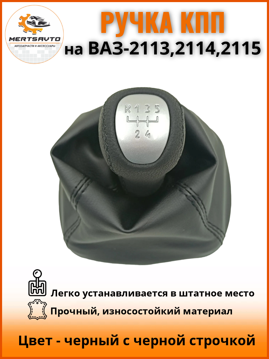 СохранитьРучка КПП с чехлом "ЛЮКС-серебро" на ВАЗ-2113, 2114, 2115 ручка коробки переключения передач, черный c черной строчкой интересное:
