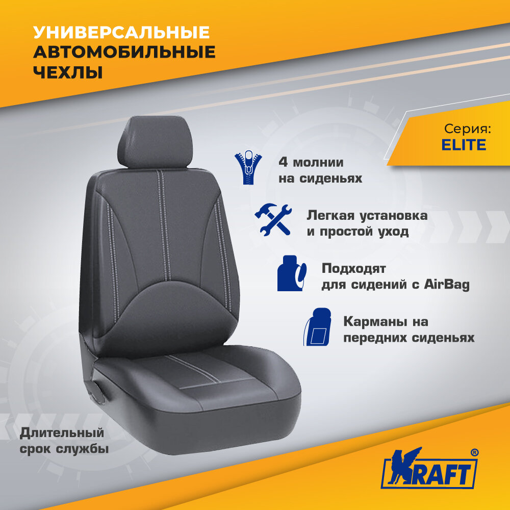 Чехлы Универсальные "Elite", Экокожа, Srs Airbag, 11 Предметов, Поролон 3Мм, 4 Молнии Kraft арт. KT835631