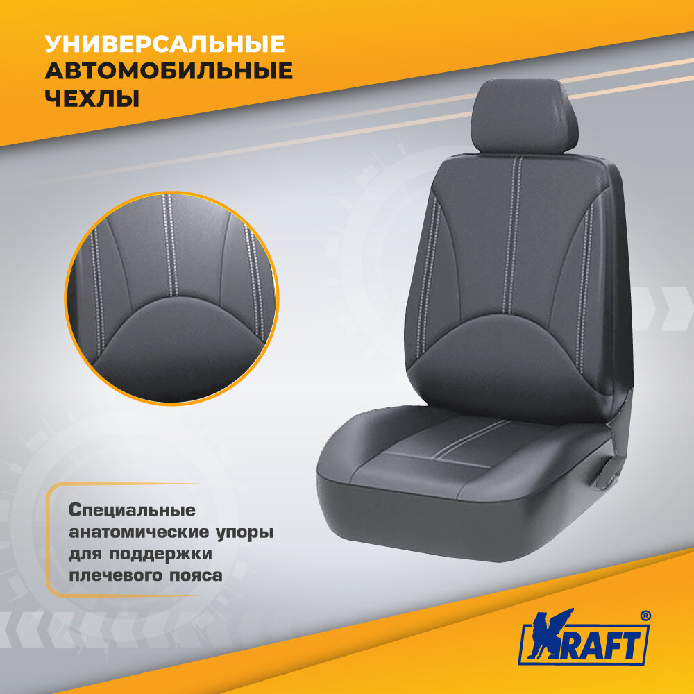 KRAFT AUTOMOTIVE KT835630 Чехлы универсальные "ELITE", экокожа, SRS Airbag, 11 предметов, поролон 3мм, 4 молнии