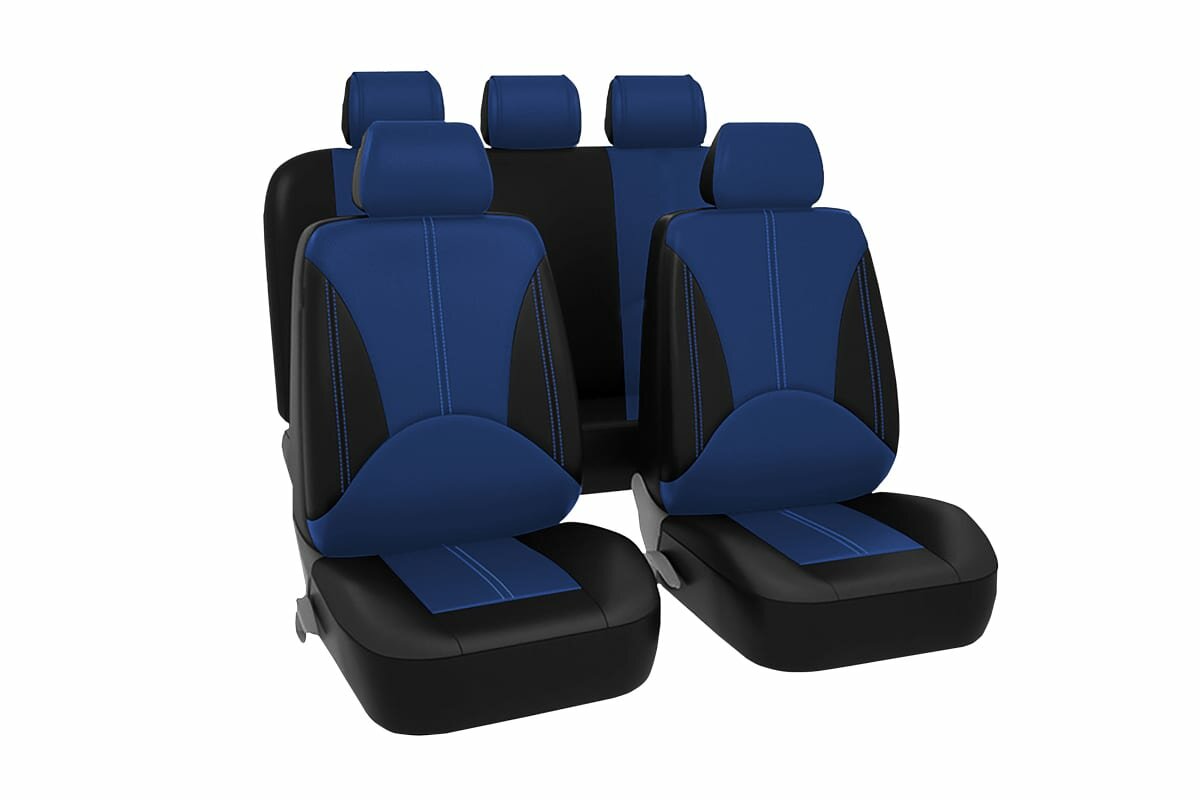 Купить Чехлы универсальные на автомобильные сиденья, комплект "ELITE", экокожа, черно-синие