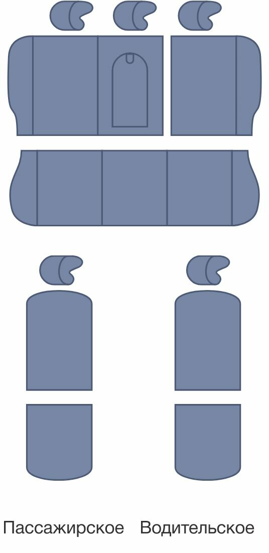 | Подробная комплектация | спинки передние 2 шт, сиденья передние 2 шт, спинка задняя большая, спинка задняя малая , сиденье заднее сплошное, подголовники передние 2 шт, подголовники задние боковые 2 шт, подголовник задний центральный, подлокотник передний, подлокотник задний |