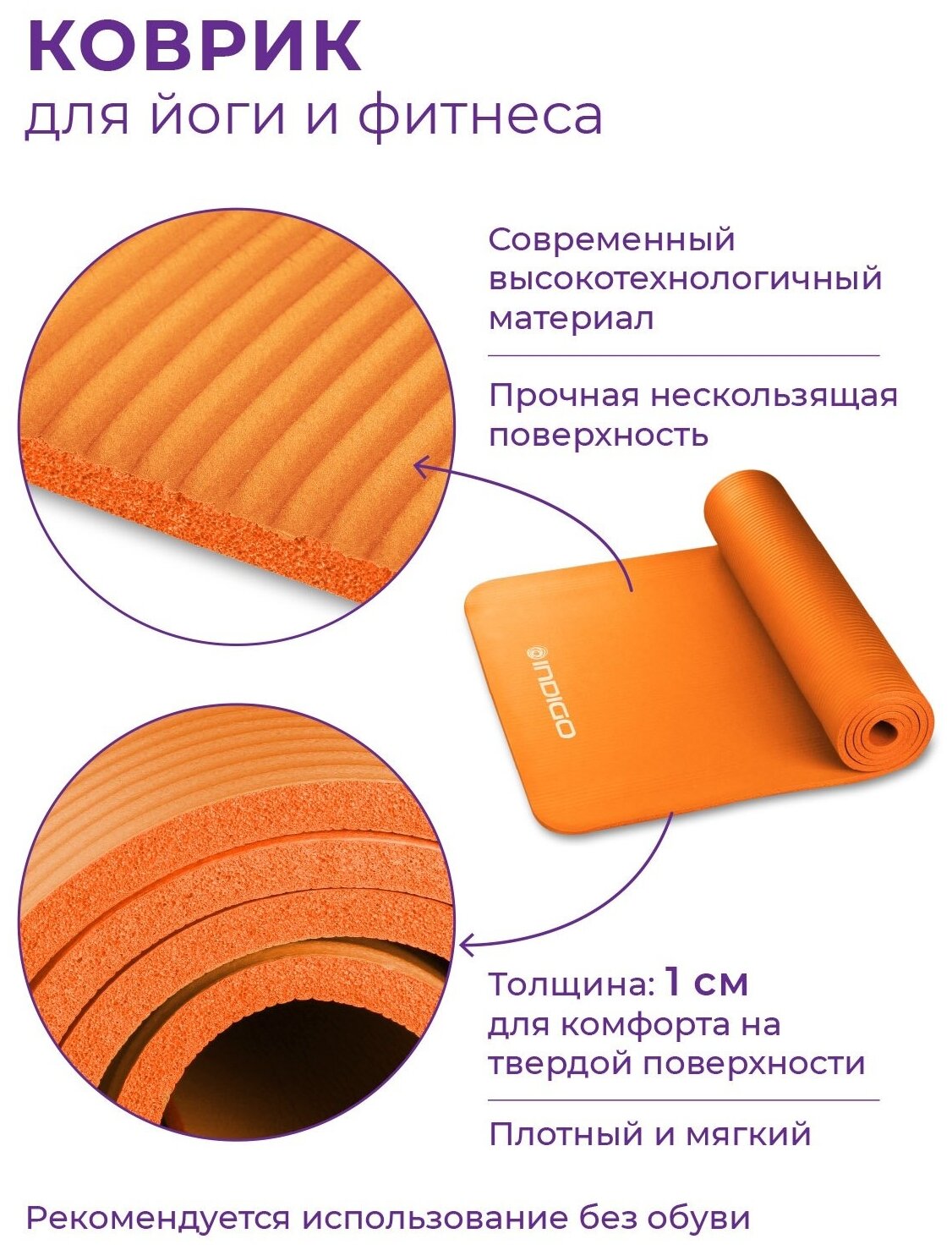 Коврик для йоги и фитнеса IN104 INDIGO NBR Оранжевый 173*61*1 см интересное: