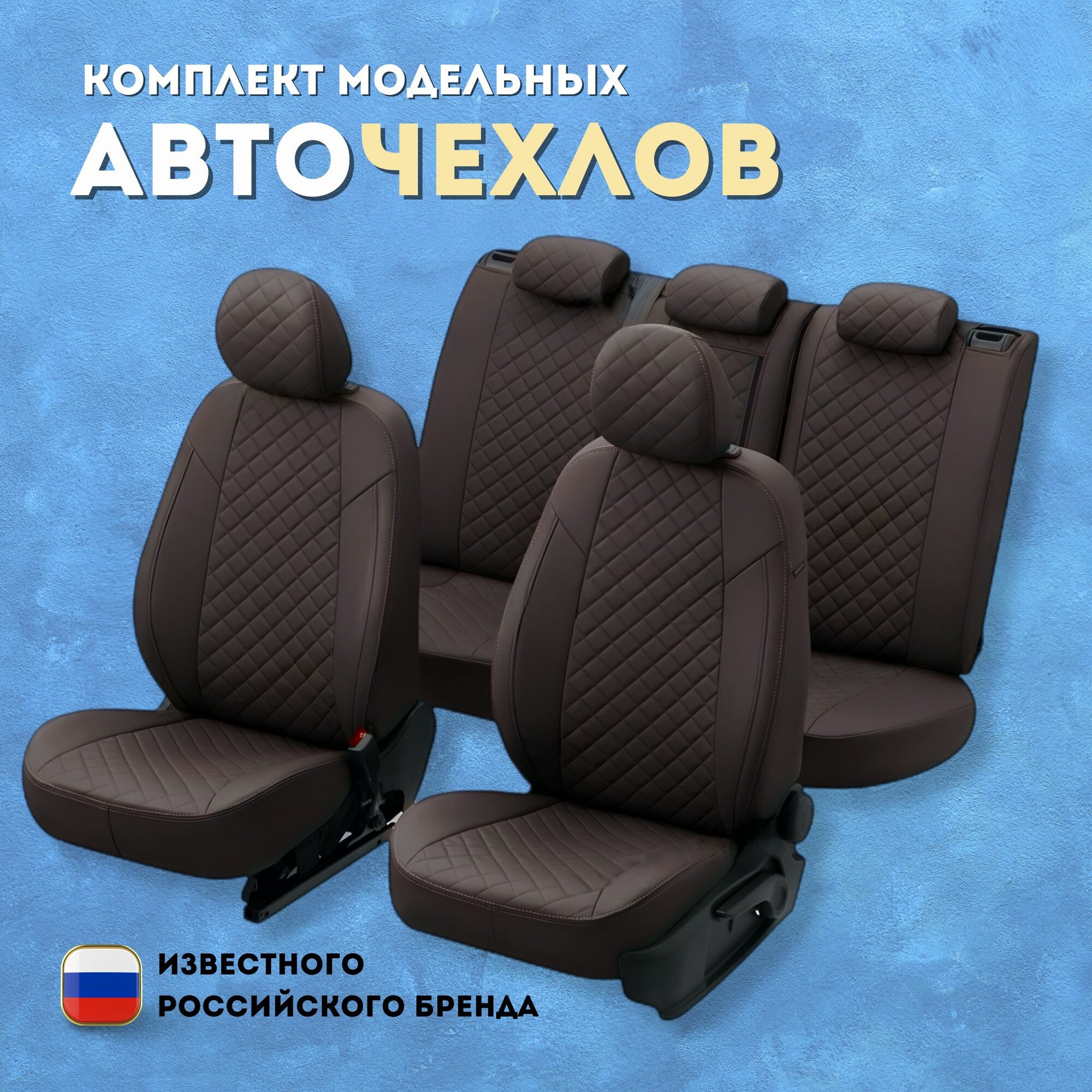 Купить Чехлы на Форд Фокус 3 седан, хэтчбек, универсал (2011-2019) Спорт, Титаниум для сиденья авто, Пилот, Экокожа ромб, Шоколадный