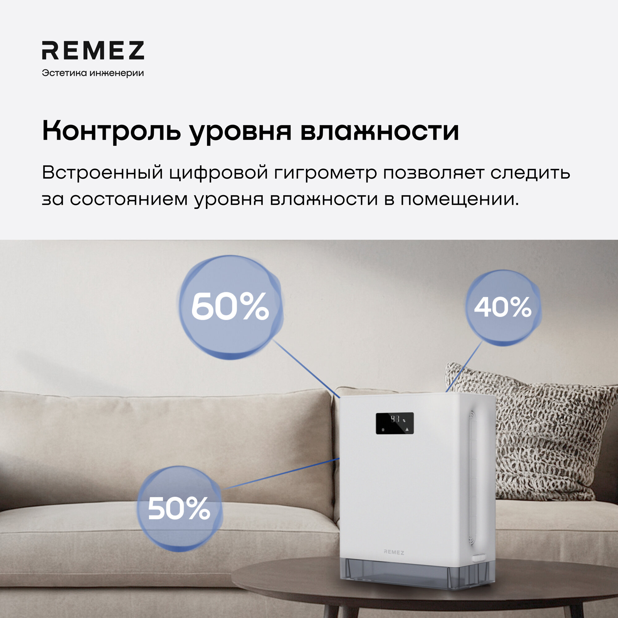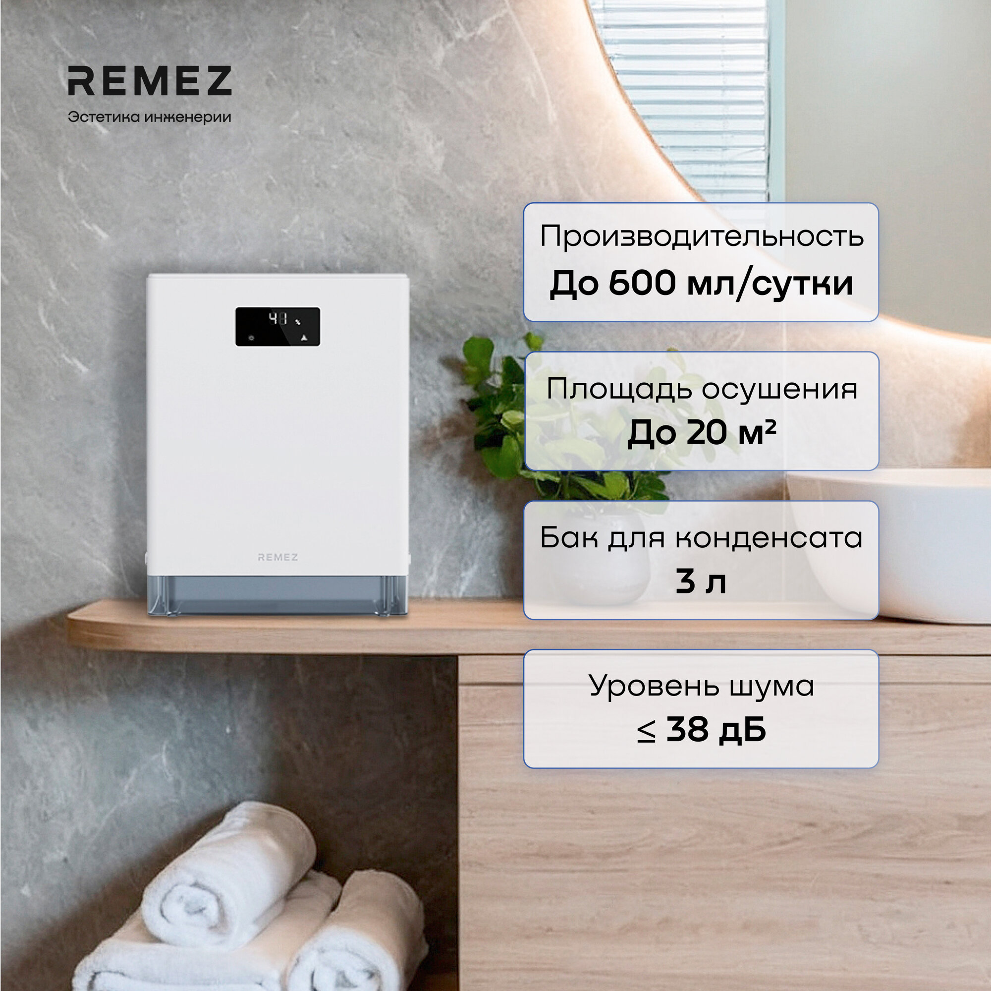 Купить Про Осушитель воздуха Remez RMD-305, напольный, сенсорный, с гигрометром, 40м³/ч, белый