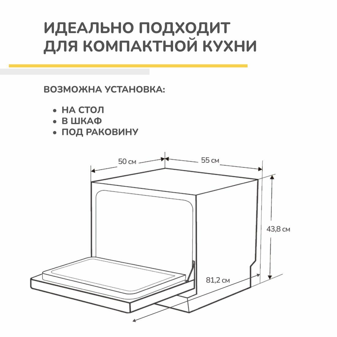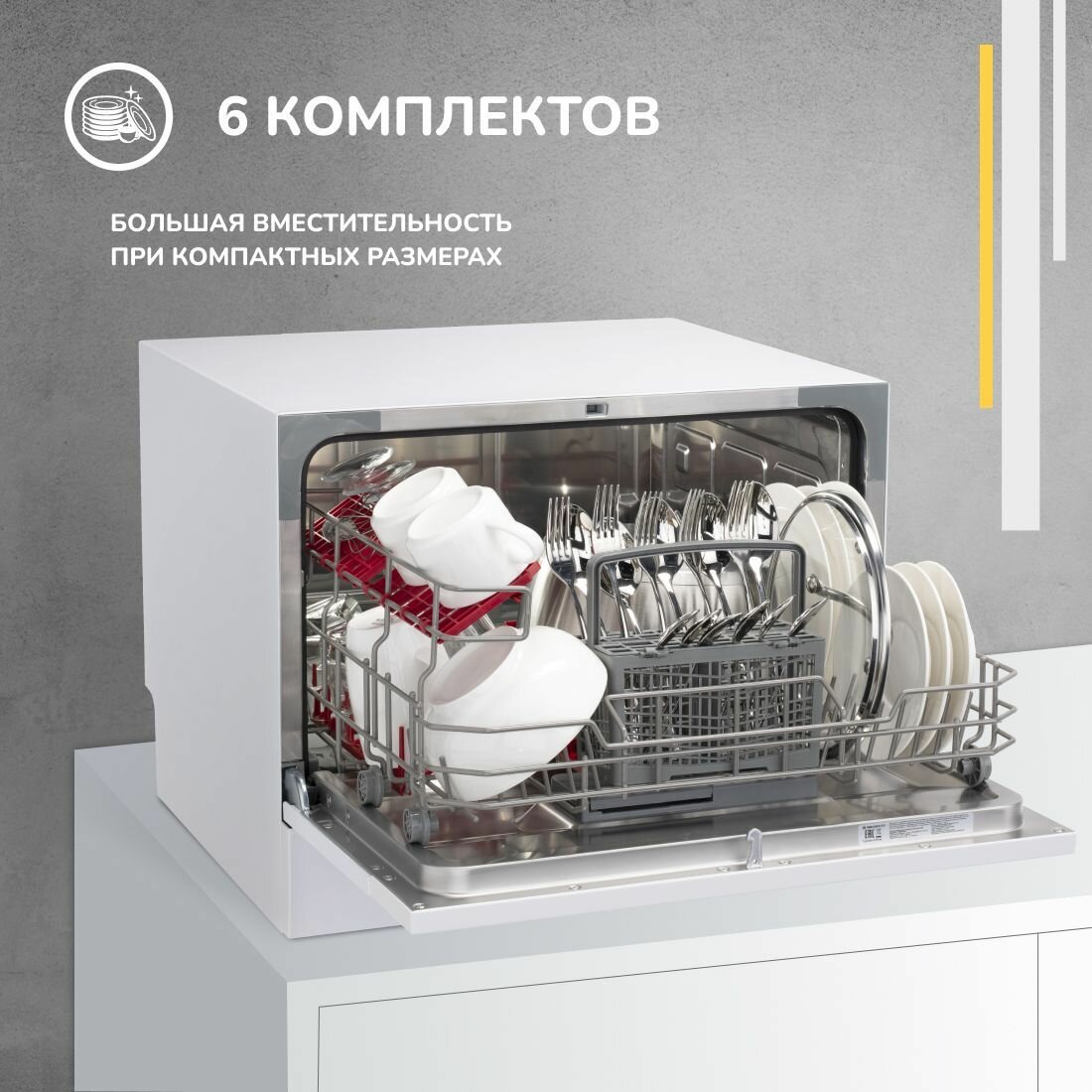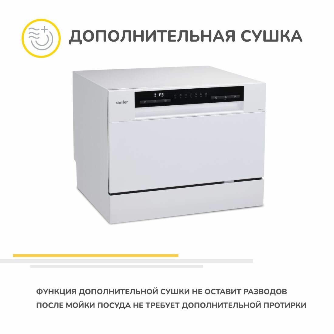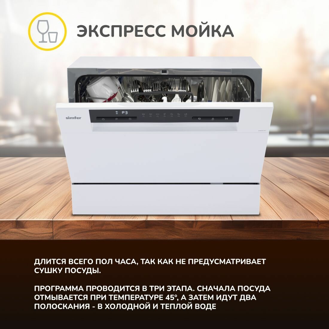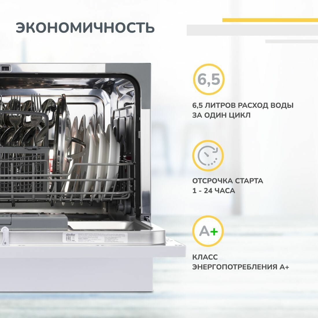 Купить Настольная посудомоечная машина Simfer , 6 комплектов , 7 программ , отсрочка старта , блокировка от детей